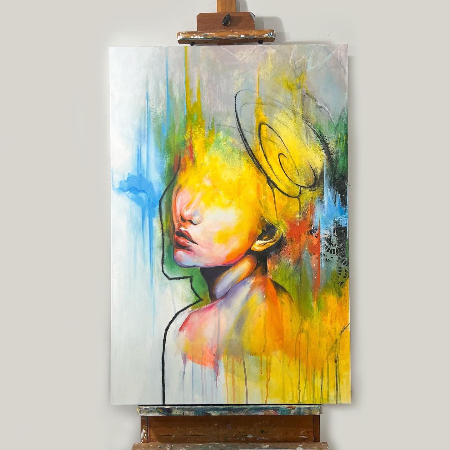 Through layered textures, vibrant color, and expressive line work, I explore the idea of self-reflection—not as a clear mirror, but as a complex inner landscape. The chaotic interplay of elements represents the often turbulent and tangled thoughts that live within our minds.