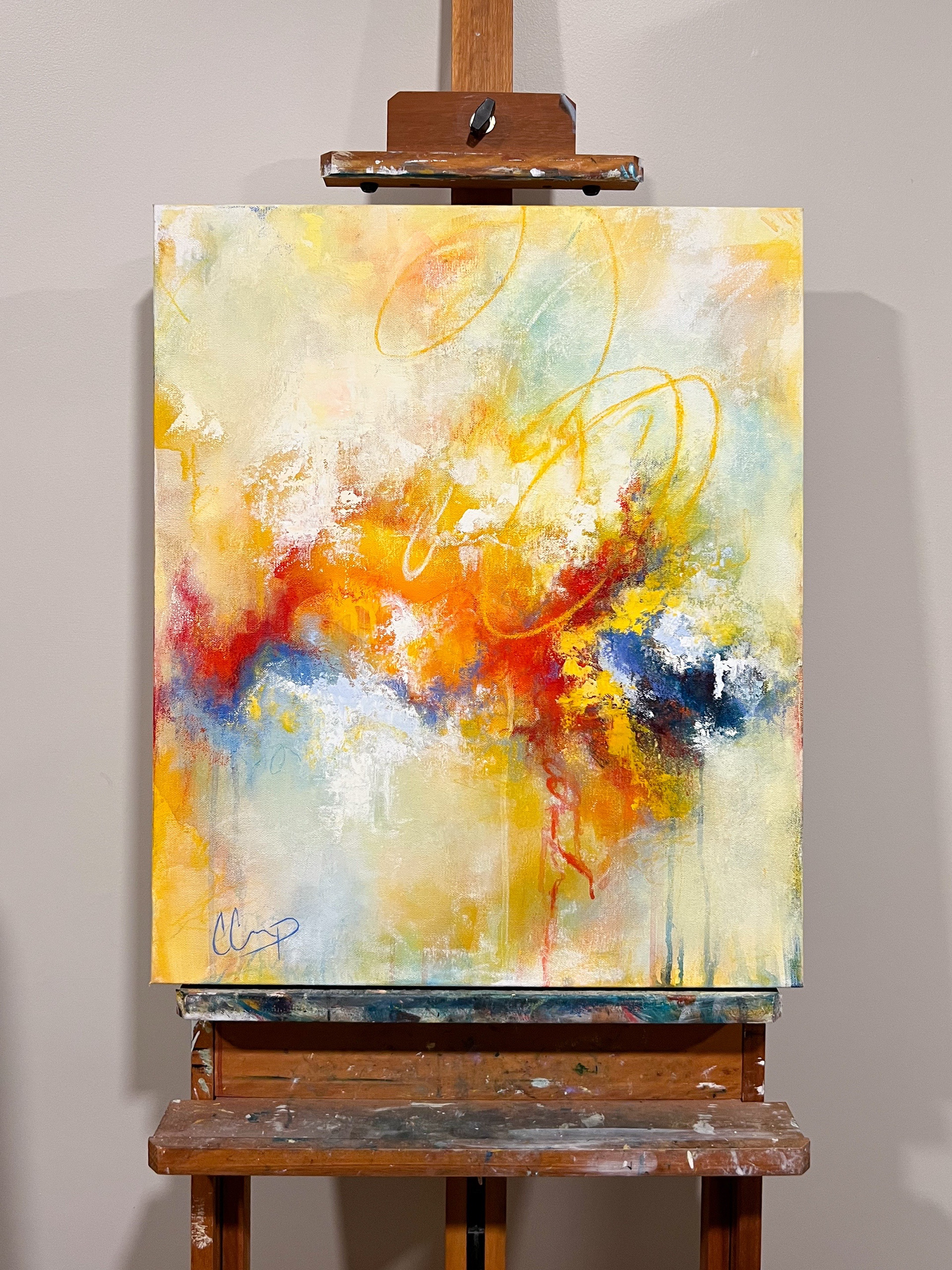 In this piece, chaotic linework and textured layers express the tangle of early maternal emotion. Vibrant yellows and reds represent bursts of joy, while deep blues quietly creep in, hinting at the sadness and uncertainty that lingered beneath the surface.